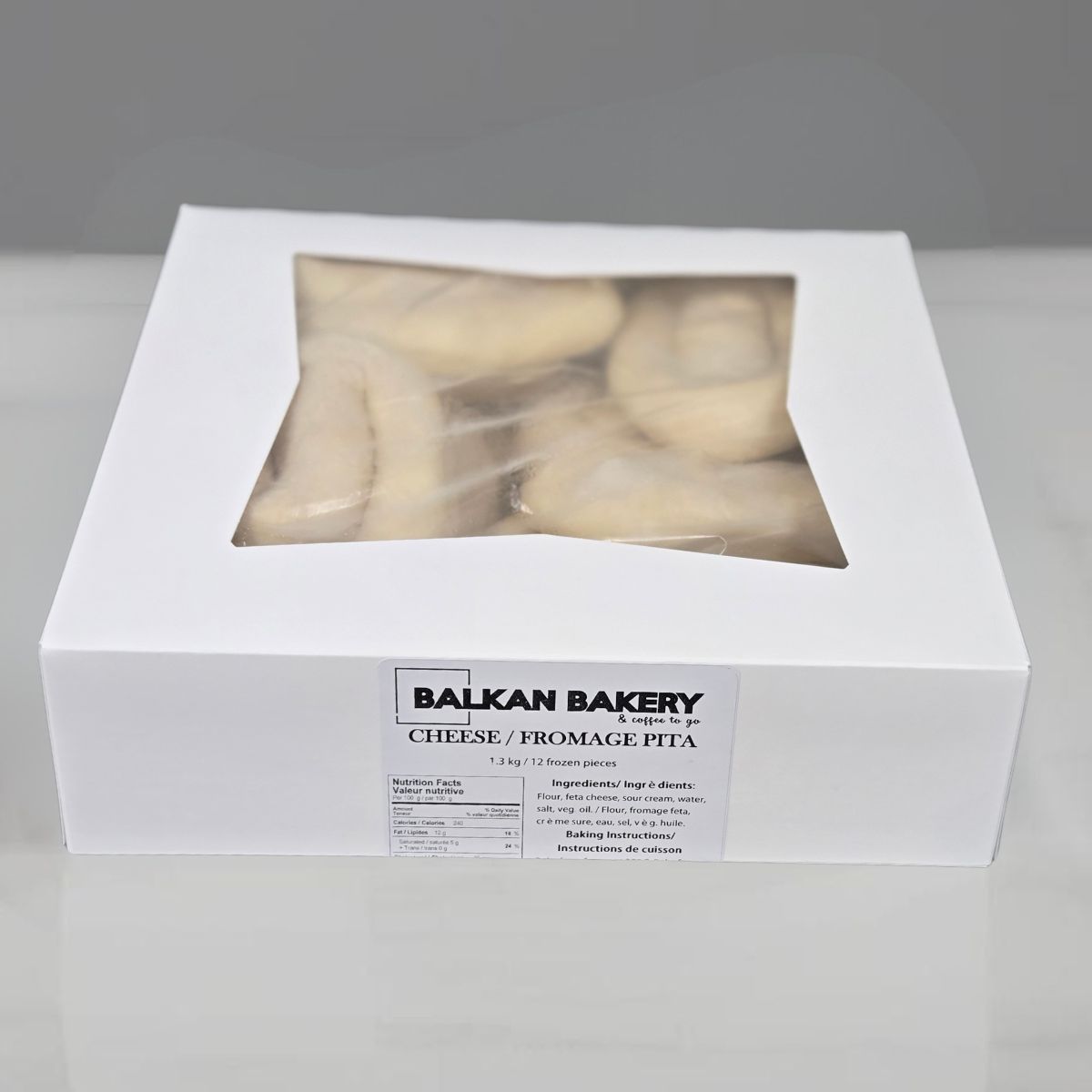 Balkan Cheese Pita = LOVE at First Bite!! Our Cheese Pita has a soft, flaky pastry wrapped around a rich, melted cheese filling. Perfect for snacking or entertaining. Balkan Bakery Frozen Cheese Pita Box contains 12 pitas.
